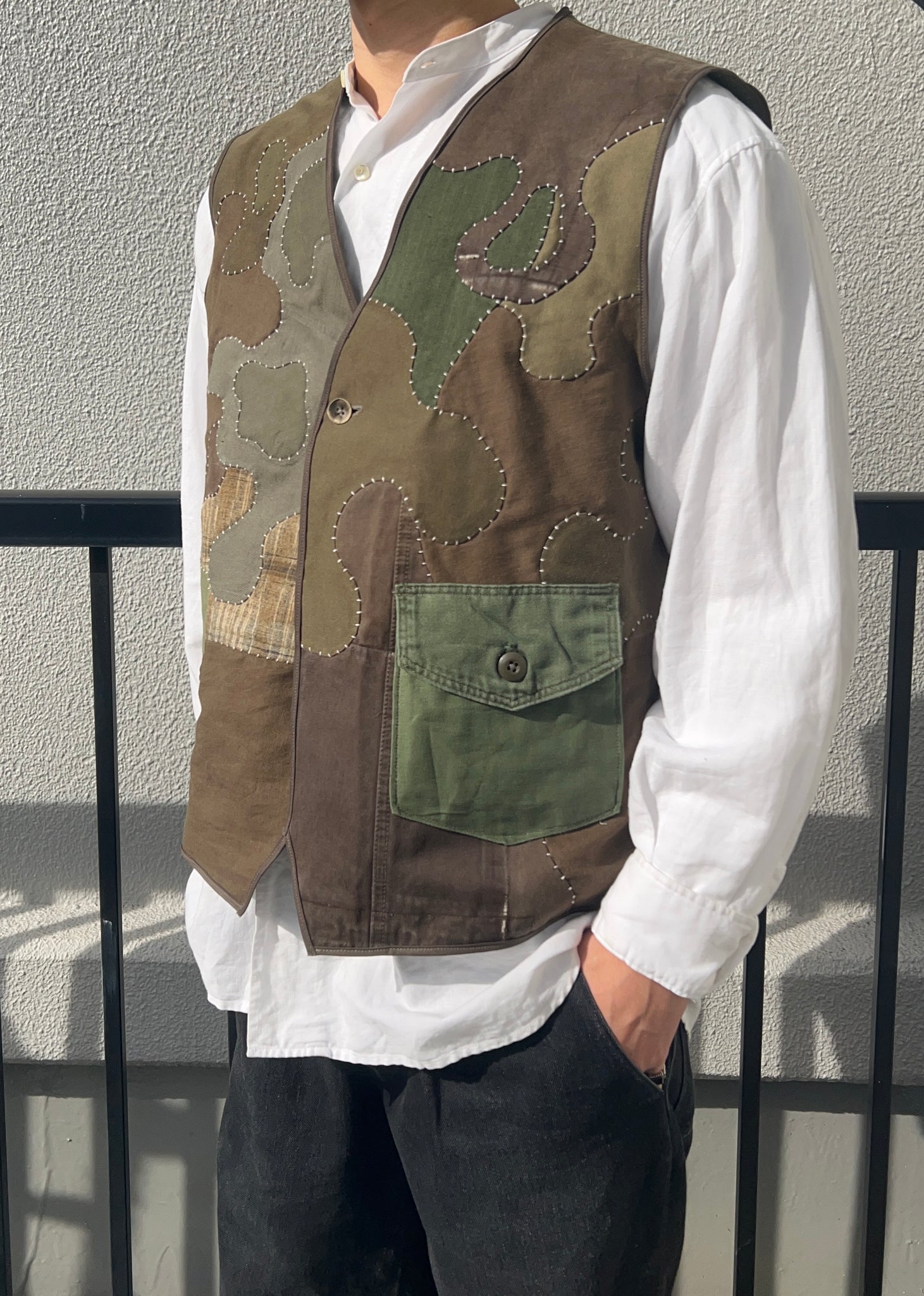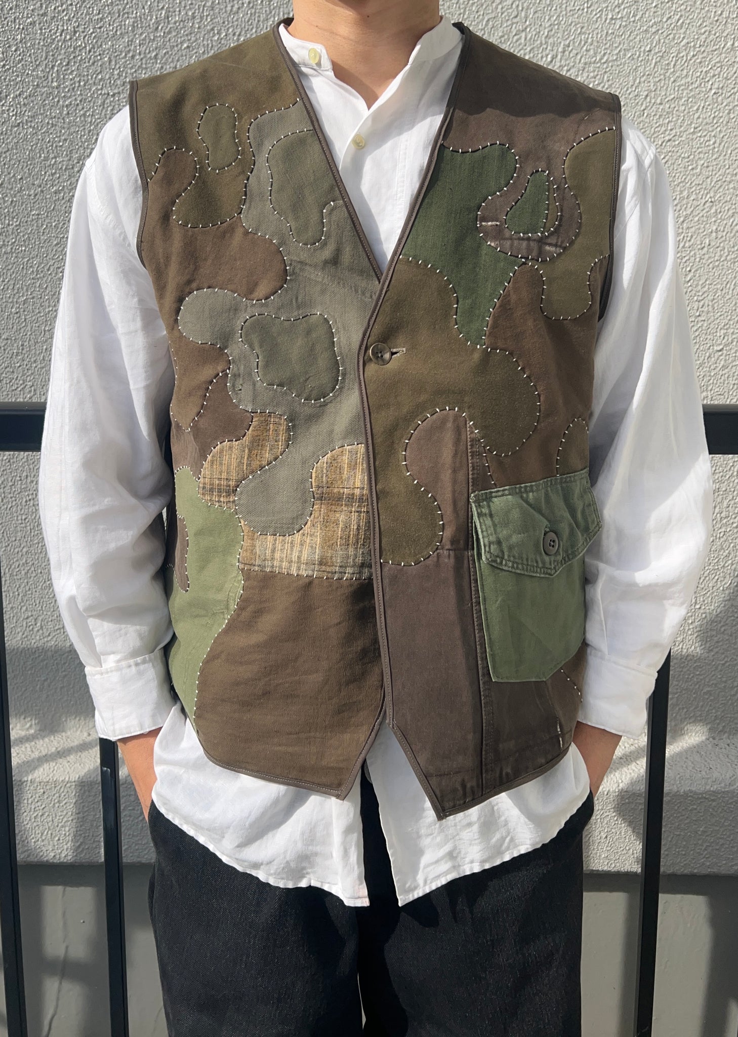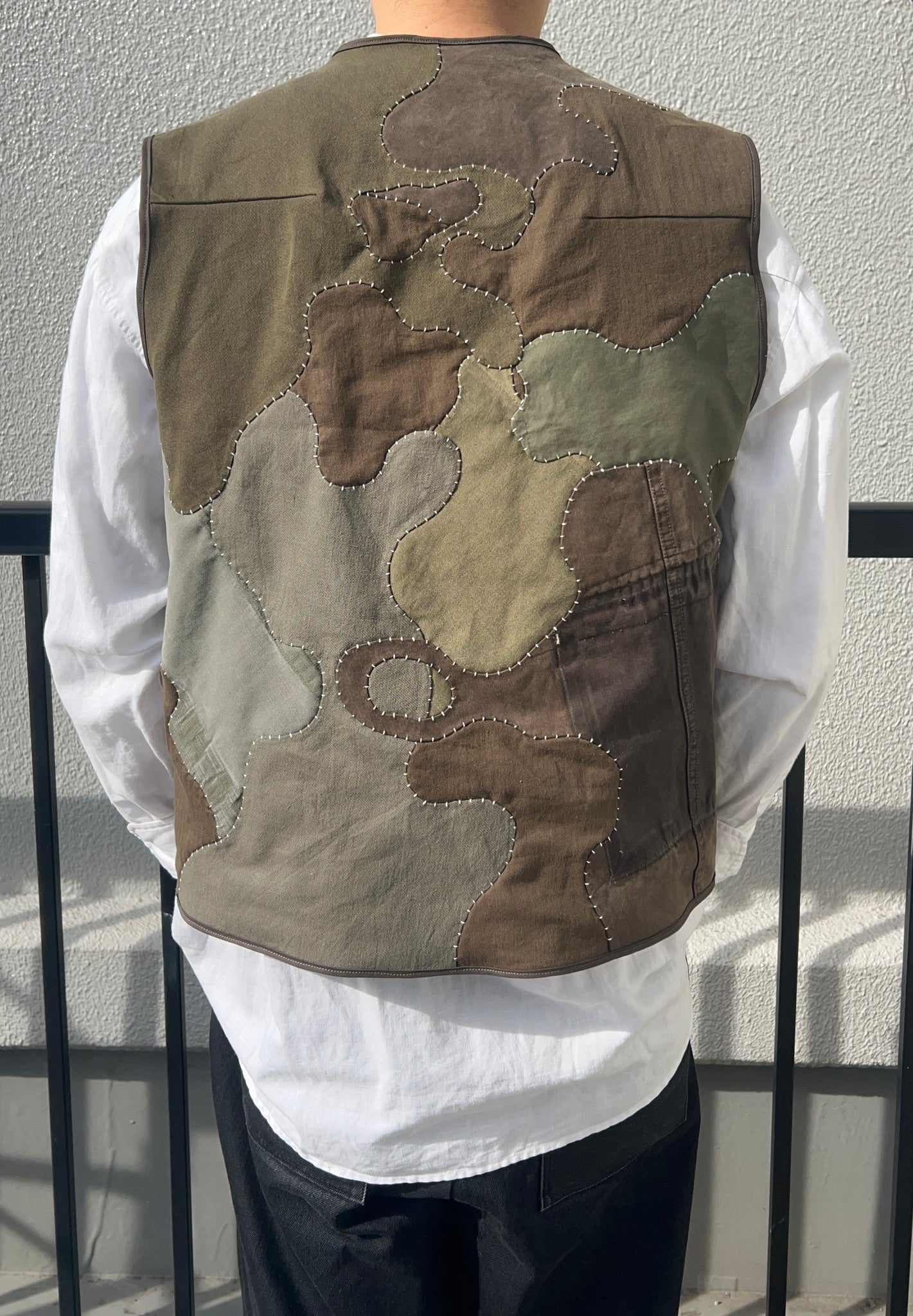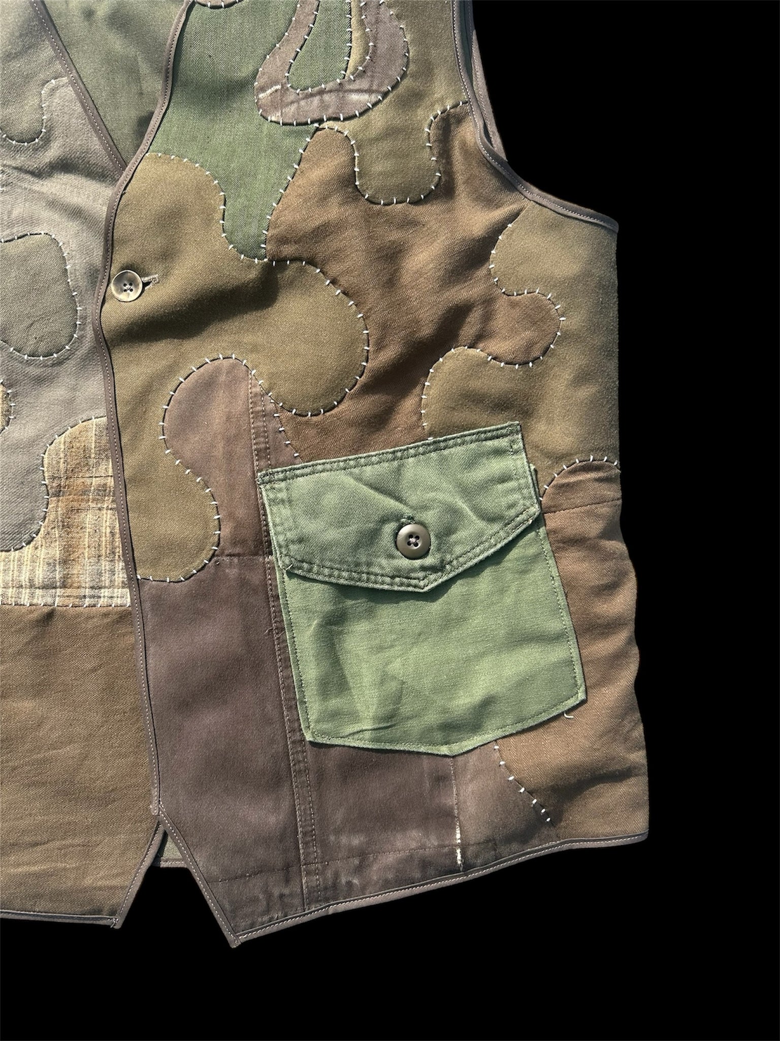 Upcycled item made of military jackets and other old fabric.